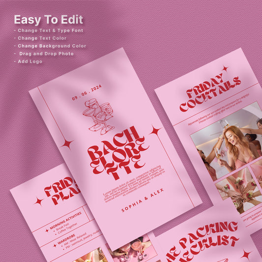 Bachelorette Itinerary PowerPoint Template Canva Bachelor Party Planner Bridesmaid & Bridal Party Guide