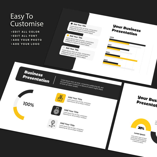 Black & Yellow PowerPoint Template - Modern Business Slide for Report Presentations & Marketing Strategy
